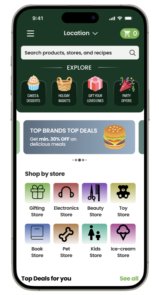 Mobile app prototype that allows users to log in, browse groceries, explore special deals, view detailed product information, and seamlessly add items to their cart for an easy and engaging shopping experience.